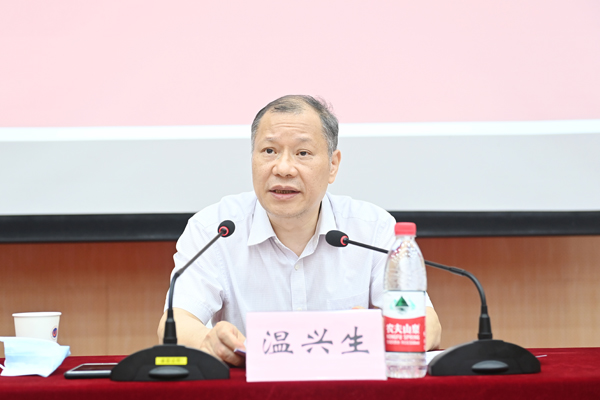 校党委书记温兴生讲话。他指出,全校上下步调一致、戮力同心,在疫情防控严峻形势下,不惧困难、勇于担当,扎实细致地完成了各项筹备工作,最终呈现了一场隆重热烈、简朴节约,主题鲜明、内容丰富,特色突出、务实高效的校庆,他代表校党委向所有倾心参与校庆、热心服务校庆、真心奉献校庆的工作人员及志愿者表示诚挚的问候和衷心的感谢。