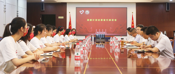 本网讯(通讯员 易凡 王远竹)6月24日,学校举行2022年“大学生志愿服务西部计划”志愿者座谈交流暨出征仪式。校党委副书记汪达出席,党委学生工作部、校团委负责人,校团委全体工作人员及21名西部计划志愿者以线上线下相结合的形式参会。