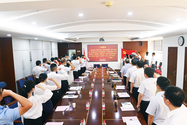 会上,纪委书记王栎带领大家重温入党誓词,全体与会人员举起右拳,在铿锵有力的宣誓声中擦亮初心,牢记作为一名共产党员的使命担当。