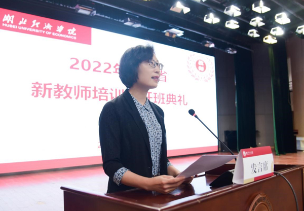 方洁代表学校对心系乡村教育、献身乡村教育的新教师表示热烈欢迎和崇高敬意!向长期关心和支持学校建设与发展、关心和支持学校新教师培训工作的各级领导表示衷心感谢!她介绍了我校办学历史、办学水平、师资力量及人才培养特色等基本情况,回顾了我校连续14年承办湖北省乡村教师培训班的经验与成果,我校从2006年开始举办该培训,建成了湖北省乡村教师青春影像馆,成立了湖北省乡村教师培训中心。她表示学校将一如既往、竭尽全力提供优质服务,确保圆满完成培训任务。她希望全体参训学员满怀理想,牢记使命;把握机遇,加强历练;展示风采,彰显魅力,以实际行动为这次培训交上一份合格的答卷。