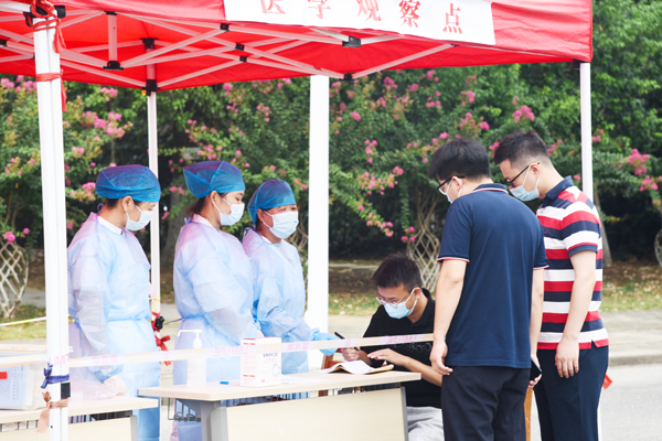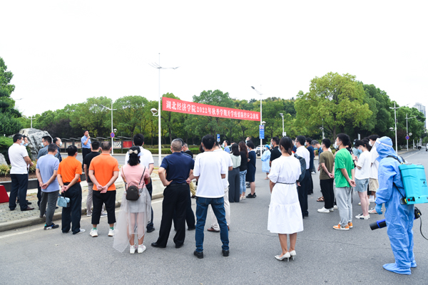 本网讯 8月24日,学校开展2022年秋季学期开学疫情防控应急演练。党委常委许传华,相关职能部门负责人、部分学院分管学生工作书记(副书记)、机关教辅部门下沉干部参加演练。江夏区疫情防控第三督导组一行来校观摩指导演练。
