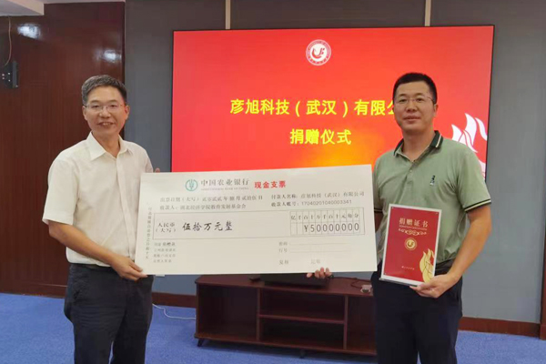 本网讯8月25日,彦旭科技(武汉)有限公司向学校教育发展基金会捐赠人民币50万元,在信息工程学院设立“支点助学基金”,资助经济困难、品学兼优的新生。校党委副书记汪达接受捐赠并向该公司董事长陈涛校友颁发捐赠证书。