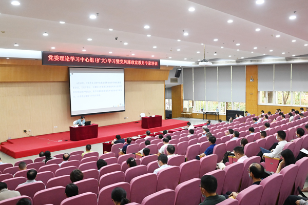 本网讯(通讯员 李杨 摄影 陶慧)9月22日,学校召开校党委理论学习中心组(扩大)学习暨党风廉政建设宣教月专家培训会。校党委书记温兴生主持。全体校领导出席,校党委委员、校纪委委员,全体中层干部、校学术委员会秘书长、企业化实体主要负责人,各二级单位党组织纪检委员、机关党委所属党支部纪检委员,校纪委监专办全体工作人员参加。