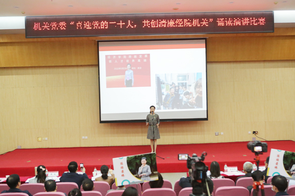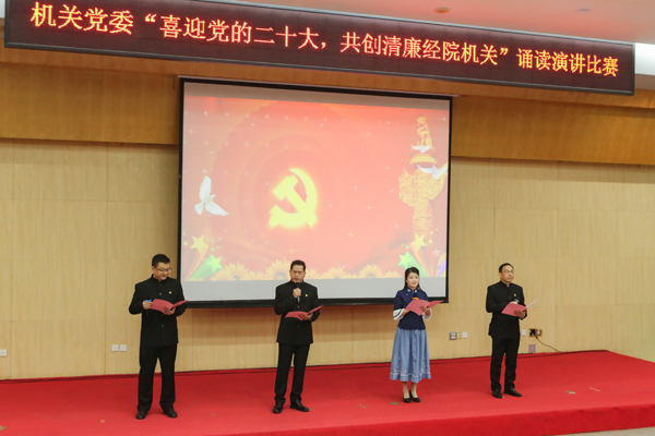 本网讯(通讯员 储环 余飞飞 摄影 彭文婕)10月6日,机关党委举办“喜迎党的二十大,共创清廉经院机关”诵读演讲比赛。校领导温兴生、方洁、刘大洪、汪达、鲁晓成、何慧刚、张国安、付宏、王栎、许传华出席,机关党委全体委员、机关各党支部书记和全体工作人员参加。