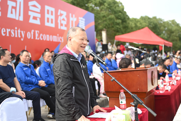 本网讯 10月20日,第十九届体育运动会田径比赛开幕式在西区田径场举行。校领导温兴生、方洁、刘大洪、汪达、鲁晓成、何慧刚、张国安、王栎、许传华出席,校体育运动委员会全体委员及各学院师生代表参加。校体育运动委员会主任、副校长付宏主持。