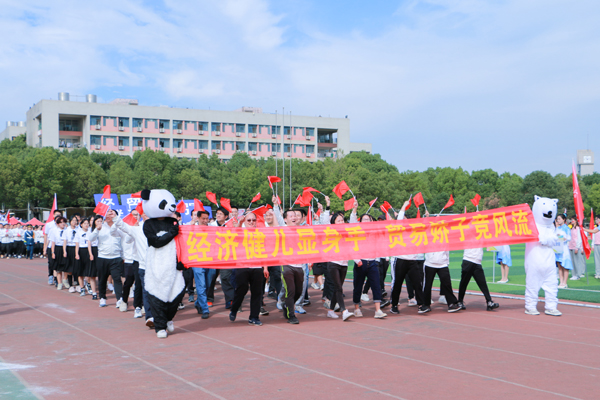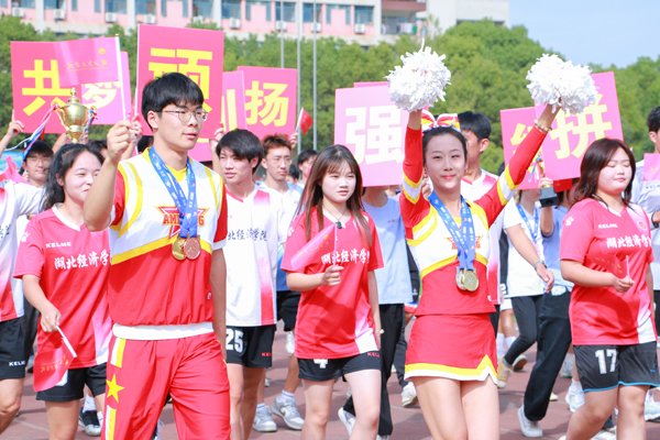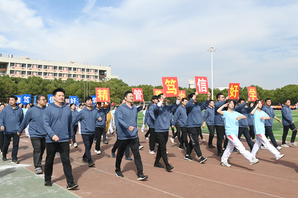 省运会运动员代表队、各二级单位运动员代表队有序入场,口号豪迈嘹亮,队形整齐划一,彰显师生风采。