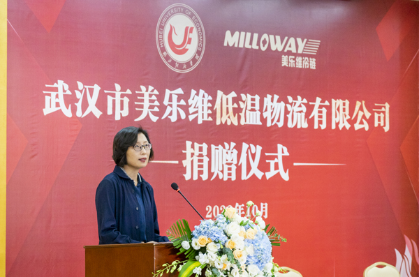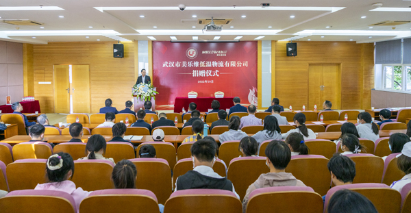 本网讯 10月19日,学校举行武汉市美乐维低温物流有限公司捐赠仪式。该公司向我校捐赠100万元,设立“美乐维奖学金”,用于奖励德智体美劳全面发展的学生。