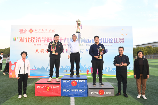 校体育运动委员会主任、副校长付宏为甲组团体总分前八名颁奖