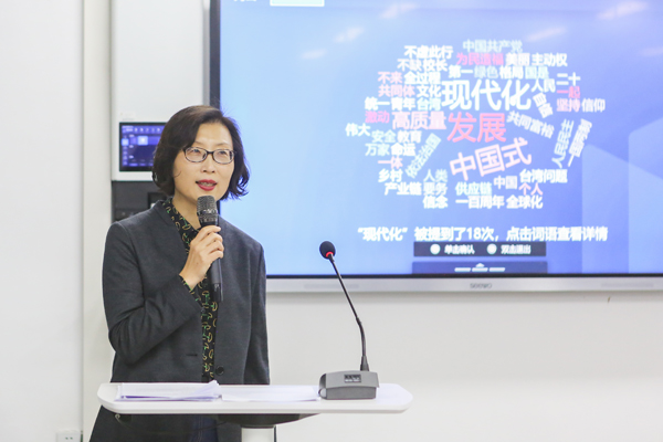 方洁通过对党的二十大报告进行文本热词梳理,引出本次授课的关键词:中国式现代化。方洁从中国式现代化的概念演进、历史进程、差异对比和理解要领四个角度,分析了中国式现代化的本质内涵。她指出,西方式现代化为顺序串联发展,而中国是工业化、信息化、城镇化、农业现代化叠加并联发展,中国用几十年时间要完成西方发达国家两百年现代化任务,必须在时空压缩下进行战略与目标赶超。从制度类型、人口规模、历史基础、资源禀赋和进程压力来看,中国式现代化也是基于中国现实国情做出的选择。