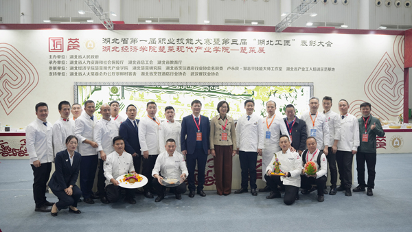 方洁慰问楚菜现代产业学院楚菜成果展“楚庄王大宴群臣”制作团队
