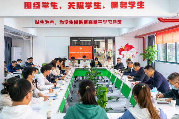 本网讯 11月17日,校党委书记温兴生到桔1、桔2学生宿舍社区宣讲党的二十大精神,学校办公室、党委宣传部、党委学生工作部、党委研究生工作部、校团委负责人及各学院党委副书记、辅导员、学生代表参加。
