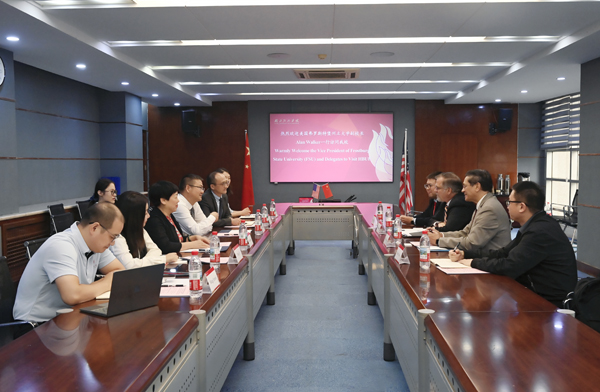 本网讯 9月22日,美国弗罗斯特堡州立大学副校长Dr. Alan Walker一行访问我校。副校长何慧刚会见了来宾。双方围绕深化合作办学、拓展合作领域等议题进行了座谈交流。