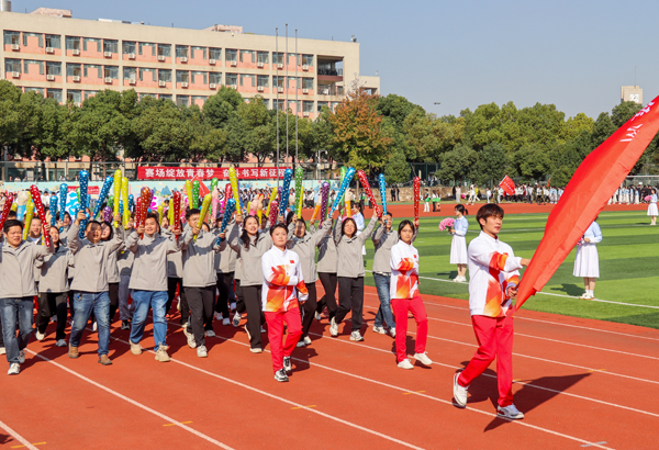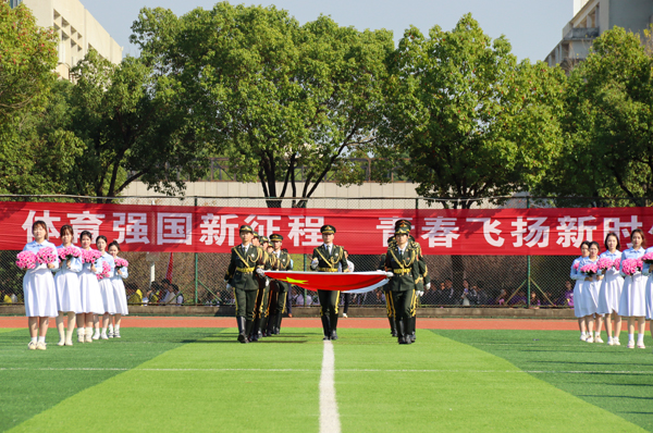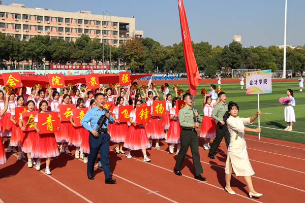 开幕式伊始,鲜花队手持粉色鲜花,身着蓝白套装入场。戎装整齐、步伐一致的仪仗队护送国旗、校旗、会旗入场。红旗队高举旗帜,汇聚成一片红色的“海洋”。各二级单位运动员方阵身着统一服装,队列严整,口号嘹亮。