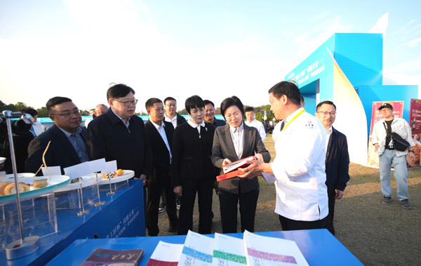 省人力资源和社会保障厅厅长李述永、省文化和旅游厅副厅长余萍参观楚菜现代产业学院师生成果展