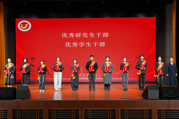 校纪委书记王栎为优秀研究生干部、优秀学生干部获得者代表颁奖