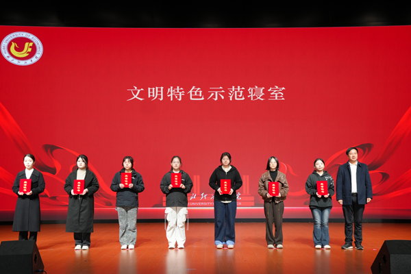 校党委常委许传华为文明示范寝室获得者代表颁奖