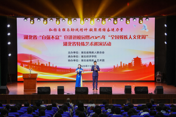 本网讯 11月27日,湖北省“自强不息”宣讲进高校暨2025年“全国残疾人文化周”湖北省特殊艺术巡演活动在我校举行。湖北省残疾人联合会党组成员、副理事长袁雪梅,副校长张忠民出席。