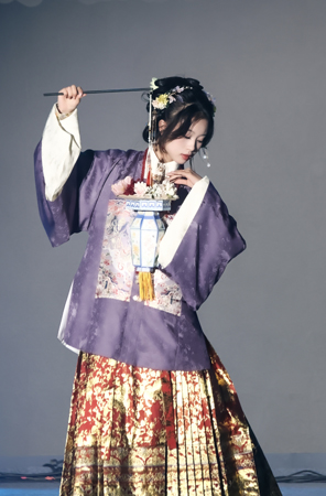 濯缨汉服社带来走秀《国风奇遇》,越王勾践剑、唐五弦琵琶、元代影青釉里红瓷高足杯、九龙九凤冠、清代花篮灯……11样文物及介绍出现在屏幕上,表演者身着各式汉服,以博物馆文物拟人化的形式,展现传统服饰与礼仪之美,带领观众感受华夏文化魅力。Muse音乐社献唱《至少还有你》,轻柔的旋律响起,歌手清透的声音传向观众席,观众们轻声唱和。