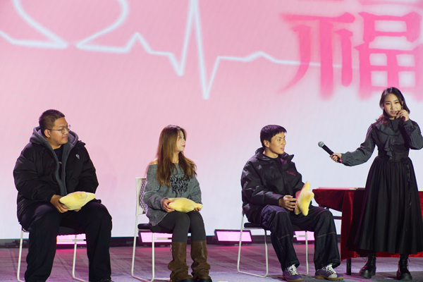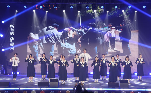 心言手语协会带来节目《星星在唱歌》,表演者们用手语演绎歌词,挥动手中的星星灯,以温柔的手势传递情感,宁静而平和。体育经济与管理学院团委选送的武术表演《天地龙鳞之功夫少年》,身着银红练功服的表演者衣摆随直拳起落翻飞,拳风猎猎。一声低喝后“黑衣大侠”横空而出,长棍点、拨、扫、挑连贯如流,二人轮番切换武器,交替展演刀法枪法,招式频出,各显神通。观众席响起雷鸣般的掌声。