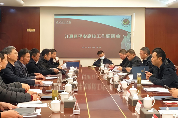 本网讯 12月10日,江夏区政法委副书记尹文韬率领由区公安分局、消防救援大队、城管执法局、市场监督管理局、区校合作办等单位组成的联合调研组来校调研平安校园建设工作。校党委副书记汪达出席。