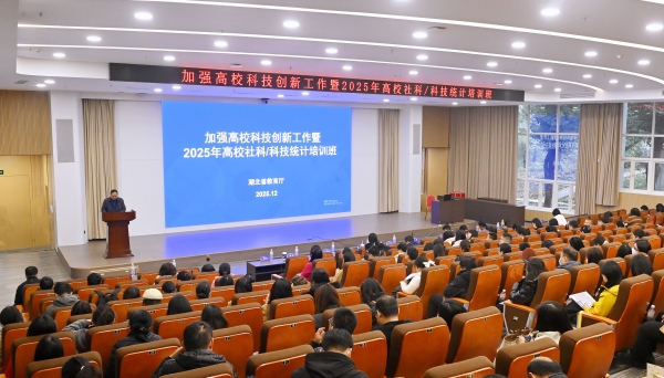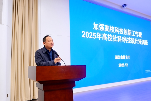 本网讯 12月12日,加强高校科技创新工作暨2025年高校社科/科技统计培训在我校举办。来自全省高校的科研管理骨干及专家学者齐聚一堂,共话高校科创发展与统计工作提质路径。校党委副书记、副校长付宏,湖北省教育厅四级调研员张晓溪出席。