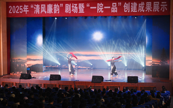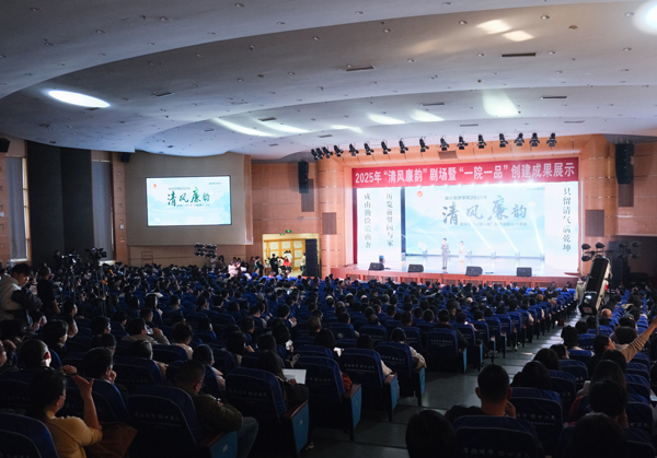 本网讯 12月25日,2025年“清风廉韵”剧场暨“一院一品”创建成果展示活动举办。校领导方洁、汪达、付宏、何慧刚、张国安、王栎、张忠民、许传华出席,全校师生党员共1400余人参加。