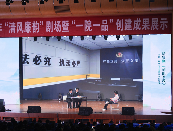 成果展示环节,9个二级单位立足自身特色,把抽象的廉洁理念转化为生动的情景剧、小品和歌舞等文艺作品,为观众呈现一堂沉浸式的廉政党课。信息工程学院情景剧《经院信风》,用校友陈涛的成长故事传递“知识改变命运,清廉守护未来”的价值追求。法学院以模拟法庭的形式呈现《一堂特殊的“廉洁教育课”》,将法律知识与腐败案例有机结合,在沉浸式体验中强化师生的廉洁意识与法治观念。会计学院情景剧《跨越时空的廉洁传承——会院人的新时代答卷》,生动演绎了会计人用一支笔书写“坚持准则、不做假账”的信仰和传承。校医院医护人员表演的《医者仁心满春归》,通过温情故事展现医护人员恪守医德医风、守护师生健康的高尚品质。工商管理学院情景剧《廉心商道:工商学子的修行路》,展现了学院通过“廉心商道”主题活动育人实践,引导学生将廉洁自律内化为价值追求与行为习惯。纪委监专办与校团委联合推出的小品《歧路》,聚焦家庭价值观塑造,通过生活化的剧情展现家庭教育对子女走好人生廉洁路的重要意义。财政与公共管理学院情景剧《初心不改》,展现了学院通过系统的课堂与日常教育,引导学生树牢廉洁意识、系好廉洁从业的“第一粒扣子”。离退休工作处带来的歌舞表演《心中的莲》和《壮美延安》将活动推向高潮,让现场观众深切感受到老一辈教育工作者对廉洁初心的终生坚守。