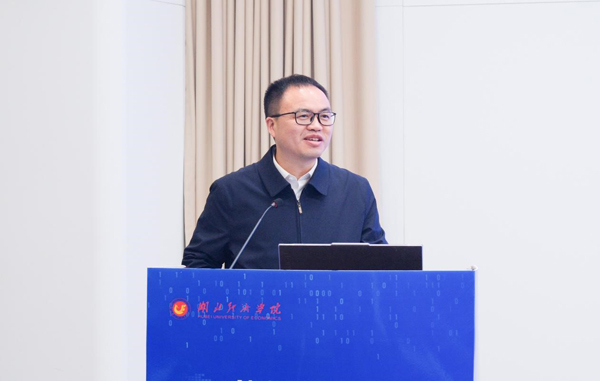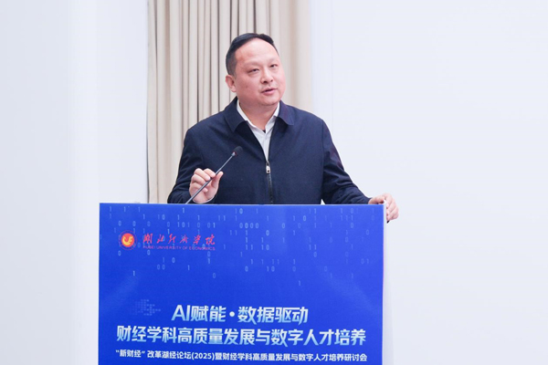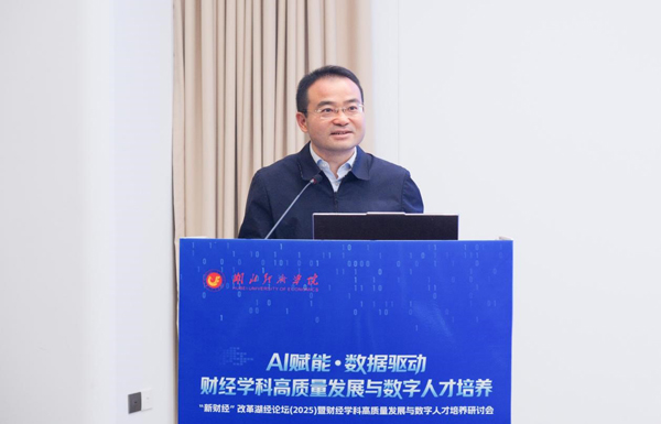 校党委副书记、副校长付宏作题为《面向人工智能蓝海的新财经学科专业体系优化探索》的主旨报告。他指出,财经领域天然具备算力、算量与算法三大“人工智能基因”,财经类高校必须主动开辟人工智能“蓝海赛道”。他介绍了学校在人工智能通识课程建设、数字金融创新湖北省重点实验室打造、现代产业学院共建、学科地图绘制等改革实践,并提出了构建以“新财经”改革为引领的“1341530”学科科研专业一体化建设体系。