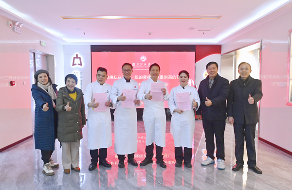 在楚菜现代产业学院,许传华与劳模们亲切交谈,高度赞扬老师们在楚菜传承创新、人才培养与文化推广中的贡献,鼓励大家继续发挥劳模标杆作用,引领更多从业者深耕专业、追求卓越。在实验教学中心,许传华鼓励朱苗老师再接再厉,充分发挥青年先锋作用,在教学改革与人才培养中持续探索,以青春之力浇灌教育之花。