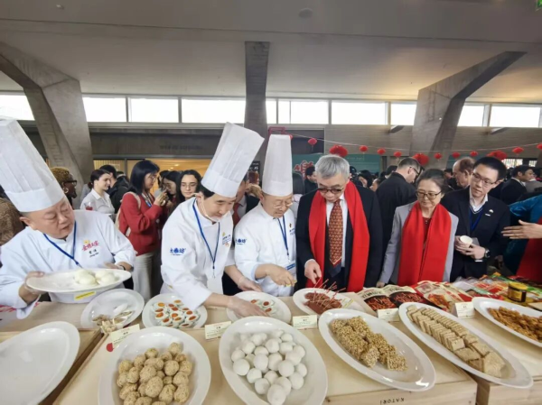 本网讯 当地时间2月10日,“非遗传情·老字号贺春——共话文明互鉴,同筑合作共赢”中国新春招待会在法国巴黎联合国教科文组织总部举行。联合国教科文组织高级别代表、多国常驻代表及各方嘉宾500余人,欢聚一堂,共庆中国农历新年。以仙桃“九味桌盒”“仙桃黄鳝”“仙桃咸鸭蛋”为代表的数十款楚菜非遗美食,向世界集中展现楚菜风情。
