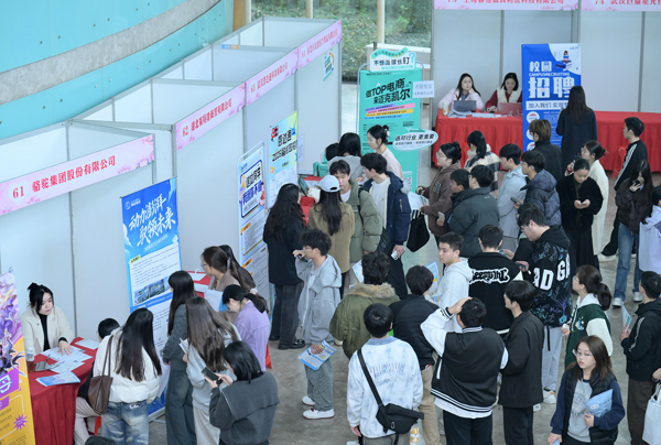 本网讯 3月26日,校友企业专场招聘会举办。来自武汉、深圳等多地的115家校友企业参会,覆盖金融、财务会计、计算机、法学、管理、文化创意等多个领域。