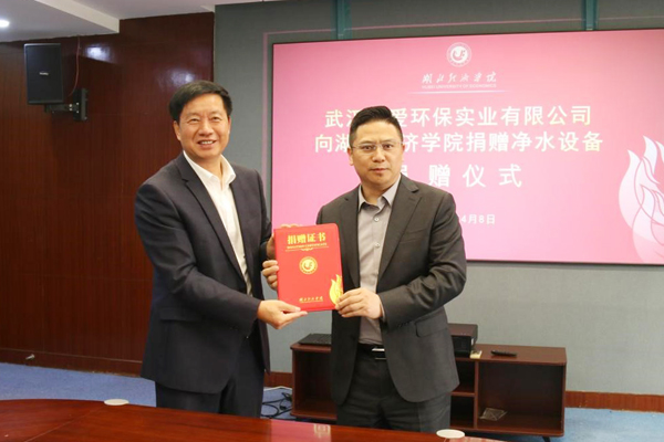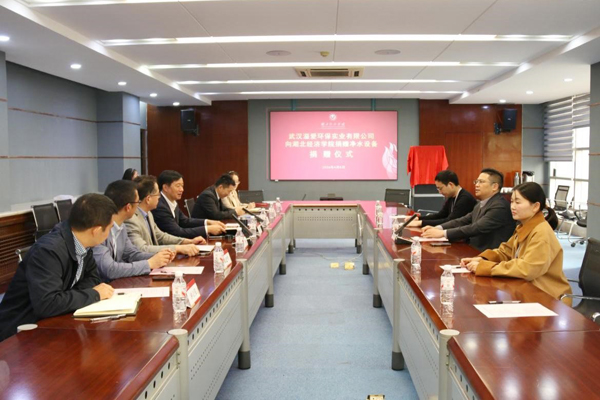 本网讯 4月8日,武汉溢爱环保实业有限公司净水设备捐赠仪式在我校举行。校党委常委许传华、武汉溢爱环保实业有限公司董事长陈本富出席。